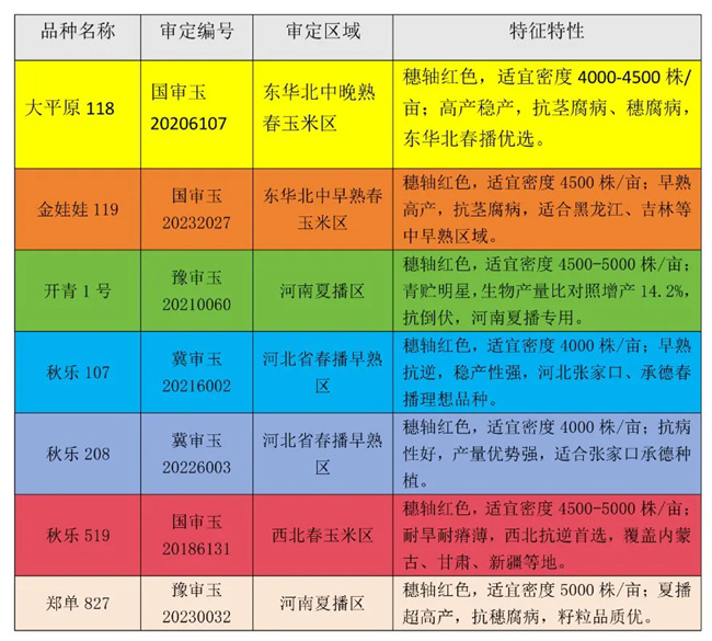 1.以下品種均已通過審定,覆蓋全國主要玉米產區,適配不同種植需求:
