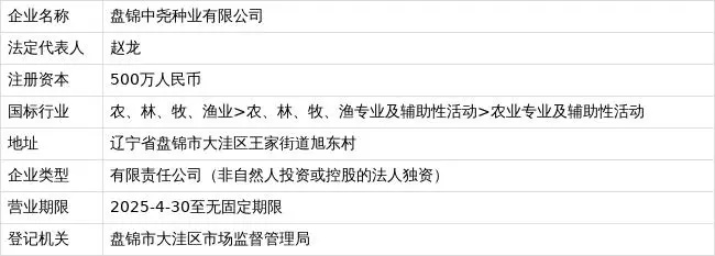 天眼查App顯示,近日,盤錦中堯種業有限公司成立,法定代表人為趙龍,注冊資本500萬人民幣,由盤錦中堯農墾集團有限公司全資持股。