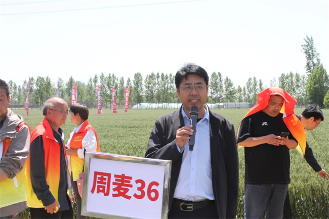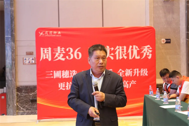 周口市農科院黨組成員、副院長賈朝陽指出,周麥36號憑借優質、高產、抗病、抗倒的特性,成為黃淮南片推廣面積最大的品種之一,這是科研育種與院企合作的成果,以高產、穩產、廣適、優質引領行業。在各方努力下,周麥36成為黃淮麥區糧食生產的重要支撐與市場典范。賈院長強調,周麥36的成功是院企協同創新的典范,實現了1+1>2的效應。他呼吁以此次會議為契機,凝聚智慧,讓周麥36、周麥48和即將國審的周麥53等品種,通過周園種業的平臺實現成果轉化,走進千萬農戶家,共譜種業與農業現代化的輝煌篇章。