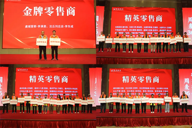 在經銷商分享環節,各位優秀經銷商代表均表示,周麥36在當地種植多年,憑借其卓越的產量、抗性(抗倒、抗寒、抗旱及抗病)和出眾的看相,贏得了市場的高度認可。周園種業的專業、專注以及優質服務,加上豐富的后期優勢品種儲備,讓經銷商們對其充滿信賴與期待。周麥36號作為優質強筋品種,年年都優秀,確實很優秀,憑借良好口碑暢銷黃淮麥區,堪稱系出名門,長相好、抗病好、抗倒好、產量好、口碑好。