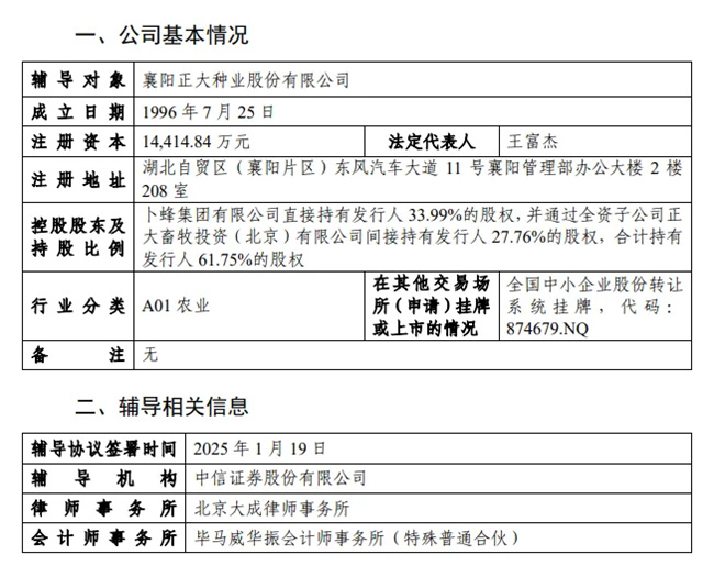2024年底,襄陽正大種業股份有限公司正式在全國中小企業股份轉讓系統(新三板)創新層掛牌。