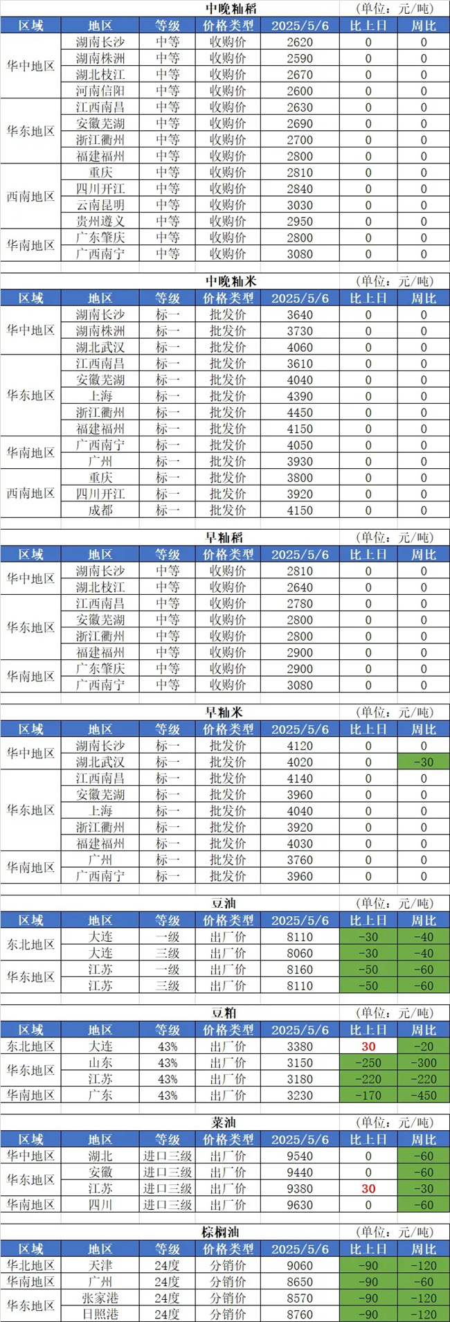 3、5月6日,最低收購價稻谷(gu)拍賣共投(tou)放(fang)(fang)約61.9萬(wan)(wan)噸(dun)(dun),成(cheng)(cheng)(cheng)交約10.4萬(wan)(wan)噸(dun)(dun)。其中早秈稻投(tou)放(fang)(fang)約1.8萬(wan)(wan)噸(dun)(dun),無成(cheng)(cheng)(cheng)交;中晚秈稻投(tou)放(fang)(fang)約30.1萬(wan)(wan)噸(dun)(dun),成(cheng)(cheng)(cheng)交約0.5萬(wan)(wan)噸(dun)(dun),成(cheng)(cheng)(cheng)交均價2601元/噸(dun)(dun);粳稻投(tou)放(fang)(fang)約30萬(wan)(wan)噸(dun)(dun),成(cheng)(cheng)(cheng)交約9.9萬(wan)(wan)噸(dun)(dun),成(cheng)(cheng)(cheng)交均價2625元/噸(dun)(dun)。