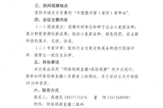 為加強農作物新品種展示示范,打贏種業翻身仗,助力鄉村全面振興,由河南省種子協會、鄭州市種子協會共同主辦,河南豐德康種業有限公司和種業商務網具體承辦的“2025年第八屆黃淮麥區小麥新品種地展大會”將于5月16日召開,現將會議有關事項通知如下:
