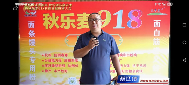 秋樂小麥育種中心主任孫文鑫從育種技術與種質資源利用等方面,深入剖析了秋樂麥918品種優勢,為參會人員揭開了這一優質品種背后的科技密碼。