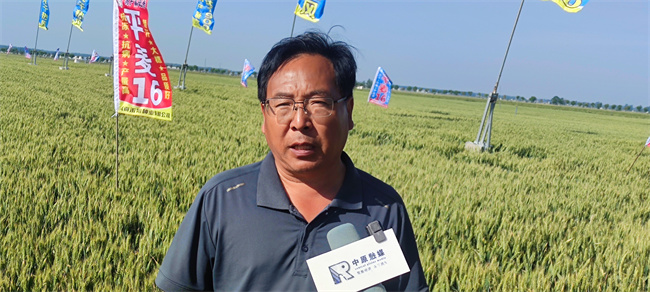 清晨7時許,與會嘉賓前往試驗田進行實地觀摩。在金色的麥浪前,平頂山市農科院副院長、平麥16育種專家王二偉詳細介紹了品種特性:“平麥16集抗病、抗倒、抗凍、高產、矮桿、穗大、抗干熱風等優勢于一身,是適應黃淮海地區氣候特點的突破性品種。”