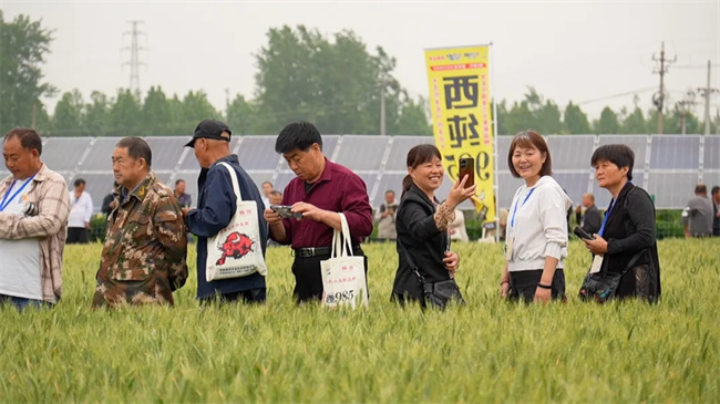 在觀摩田現場,阜陽市正高級農藝師計中明指出,面對近年來氣候復雜變化,如今年干旱持續時間長,西純985展現出多抗性,是一個高產、優質且極具推廣潛質的品種。種植大戶分享了他的種植經驗,表示西純985的抗病性令人滿意。靈璧代理商王靈云認為,西純985從2024年接觸以來,長勢良好,穗長、抗倒能力和抗黃化葉病表現突出,值得推廣。渦陽縣代理商羅來順也提到,西純985分蘗能力強,抗凍性好,大群體、大穗型、大籽粒,市場反饋良好,對其推廣充滿信心。