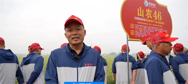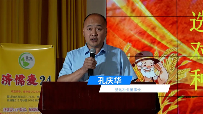 在室內交流研討環節,濟寧市圣地種業有限公司董事長孔慶華分析山農46和濟儒麥24的市場競爭優勢時指出,公司始終以客戶贊成度、滿意度、合作意愿為工作出發點,秉持“客戶第一”原則,致力于實現“客戶高興來、滿意歸”的核心理念。他強調,下一步,公司將完善質量管控體系,通過技術創新降低成本,讓利客戶;開展跟蹤技術服務,配套“良種良法”項目,充分發揮品種增產潛力,持續提升合作伙伴滿意度。