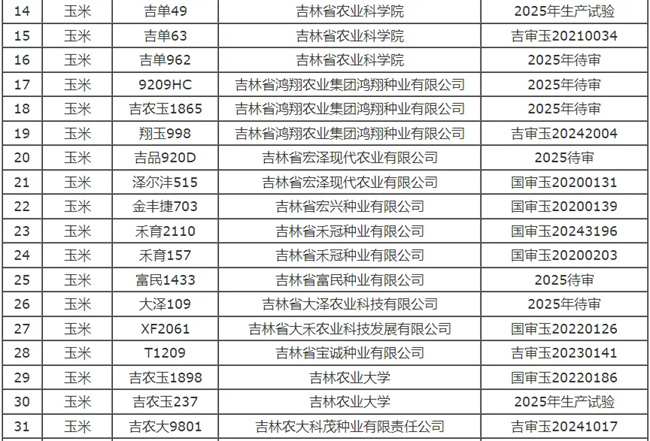吉林發布2025年農作物品種高產競賽初審通過品種
