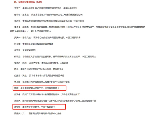 其中,錢前院士、蓋鈞鎰院士被授予第九屆全國道德模范榮譽稱號,為全國敬業奉獻模范。