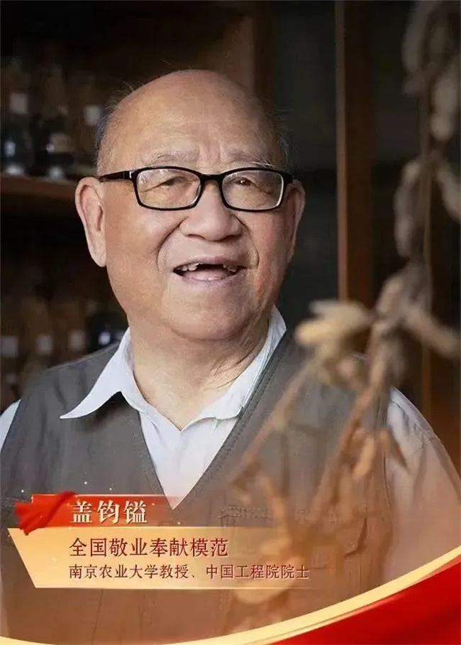 作為我國大豆科技界唯一的院士,“祖國需要什么,我就研究什么!”是蓋鈞鎰一直秉持的科研理念。他白手起家收集、創制3萬余份大豆種質資源,建成世界第三大大豆種質資源庫,60余載躬耕在大豆遺傳育種研究第一線。他創新育種技術,大幅度提高大豆育種效率;他積極響應國家糧食安全戰略,在東北、黃淮海和南方三個大豆產區建立育種研發基地,探索推廣大豆玉米帶狀復合種植法。他始終堅守在高等農業教育最前沿,把熱愛祖國、扎根大地的精神一代代傳下去,培養農學及相關學科學生超過萬人。如今,89歲高齡的他仍每天埋首實驗室、指導學生科研,將畢生心血傾注一粒粒直徑不到一厘米的大豆,為的就是“中國田里中國種,神州萬里豆花香”。