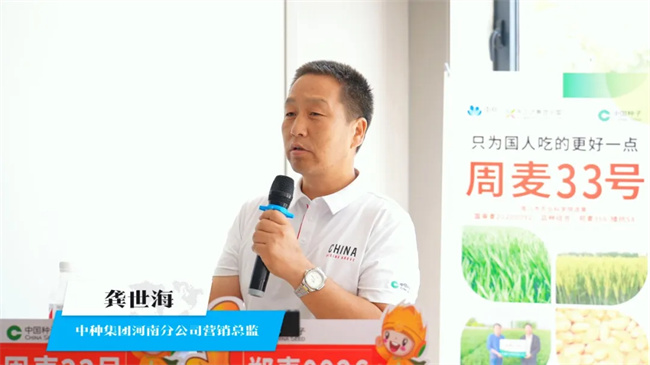 中種集團河南分公司營銷總監龔世海發布了新品種信息。公司通過結合自研與合作研發,持續豐富產品線,以滿足不同地區、不同種植戶的需求。同時,公司積極探索多元化合作模式,并充分利用互聯網平臺進行推廣,致力于提高品種在區域市場的占有率,推動農業的可持續發展。優秀經銷商代表在交流發言中表示,中種集團作為種業行業的“國家隊”,為他們提供了堅強的后盾,極大地增強了他們推廣新品種的信心。他們紛紛表示,將加大宣傳力度,向農民重點推薦周麥33號和鄭麥0926,努力擴大這兩個優質品種的種植覆蓋面,讓更多的種植戶受益。