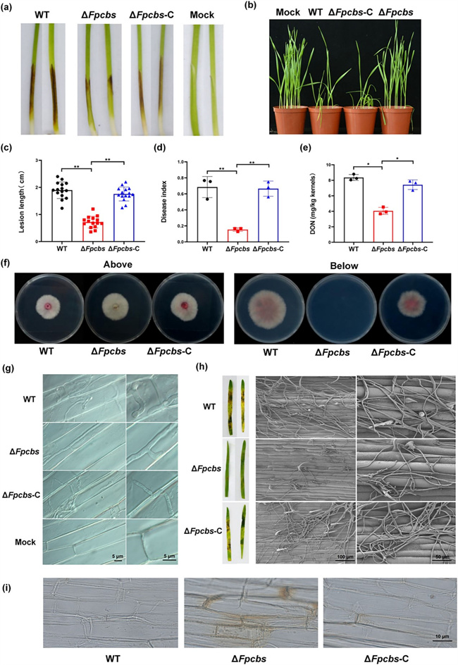 小麥莖基腐病是由假禾谷鐮孢(Fusarium pseudograminearum)引發的全球性土傳病害,嚴重威脅小麥產量和糧食安全。如何科學有效地防控小麥莖基腐病已被中國科協列為“2022年度十大產業技術問題”之一。該研究團隊通過基因敲除、多組學聯合分析結合試驗驗證發現:FpCBS缺失導致假禾谷鐮孢內源H2S水平顯著降低,并引發硫代謝紊亂,包括谷胱甘肽氧化還原失衡和氨基酸代謝異常;菌株抗氧化能力下降,對H2O2敏感度增加,細胞內鐵積累加劇氧化損傷;毒素DON合成顯著減少,病原菌毒力明顯降低;病原菌穿透結構減少80%,宿主防御反應增強,病情指數降低77.5%。由此可見,FpCBS/H2S是連接假禾谷鐮孢代謝與致病力的關鍵節點,該研究為小麥莖基腐病的綠色防控提供了重要理論依據。