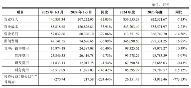 (3)管理費用和研發費用:2025年1-3月管理費用、研發費用較上年同期分別下降2,570.45萬元、184.62萬元,降幅分別為9.73%和1.54%。本期管理費用和研發費用降幅低于收入降幅,主要原因為公司人員成本支出較為剛性,以及公司為增強行業競爭力和市場地位,持續保持較大規模研發投入。
