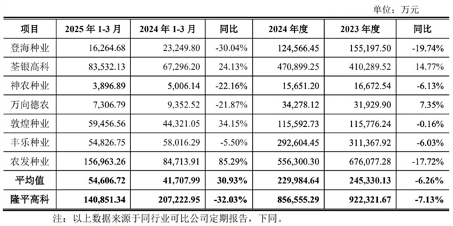 5月11日,隆平高科發布關于向特定對象發行A股股票會后事項承諾函。其中,對公司2024年及2025年1-3月業績下滑進行了情況說明,并與同行業可比公司進行了對比。