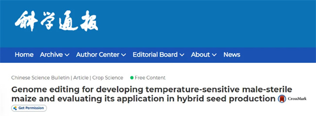 近日,中國農業科學院作物科學研究所謝傳曉研究員團隊在《科學通報》發表題為"基因編輯創制玉米溫敏型不育系及其雜交制種應用評估"的研究論文,利用CRISPR-Cas基因編輯技術精準創制玉米溫敏核不育系,并繪制出了基于該突變體全國生態適應性地圖,為玉米雜交制種技術從細胞質不育升級至細胞核不育提供了有益的探索。