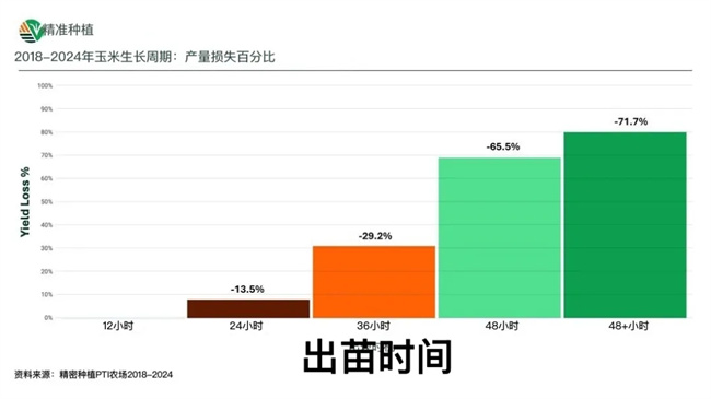 產量影響 :玉米出苗耗時越長,產量損失越高。