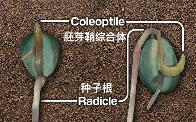 玉米種子的發芽方式固定,胚位于種子一側。胚吸收水分(即土壤濕度)后開始發芽。當種子尖端朝下放置在播種溝中時,胚莖將開始向上發芽,逐漸接近破土而出。