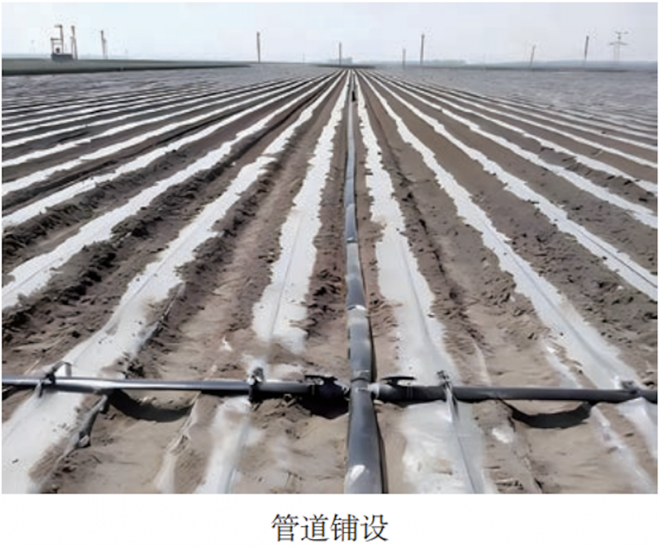 一般采用干管—支管—滴灌帶三級分流灌溉模式,主管選用直徑為90~110毫米的PVC(聚氯乙烯)管(地下埋管)或相同規格的PE(聚乙烯)軟管(地上鋪管),支管選用直徑為50毫米的PE膠管或直徑為60毫米的PE軟管。滴灌帶可選用單翼迷宮式滴灌帶或者內鑲式滴灌帶,內徑16毫米,滴頭間距30厘米,滴頭流量1.5~2.0升/時,工作壓力0.05~0.10兆帕,滴灌帶應符合GB/T19812的要求。上述兩種滴灌帶鋪設方便,價格較低,不可重復使用。