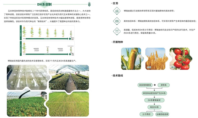 在DH系(雙單倍體系)創制方面,博瑞迪同樣成績斐然。與中國農大陳紹江團隊全面合作,構建的先進技術體系,實現了從誘導、鑒別到加倍的全流程優化升級。博瑞迪不但可以完成玉米DH系的高通量生產,且誘導率與加倍率均位于行業前列,同時,小麥、番茄及十字花科作物也實現了快速培育純合自交系,為加速育種進程開辟了新路徑。
