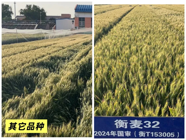 近年來,氣候復雜多變。為應對氣候變化,品種的穩產、節水、抗旱、抗穗發芽、抗倒春寒能力,成為黃淮海麥區農業生產迫切需求。衡麥32的成功培育,突破限制品種的光、熱、水、肥、土等關鍵核心技術問題,實現產量與效益、高產與優質、生產與生態、資源環境與綠色協同并進,更好地滿足市場迫切需求的突破性新品種。