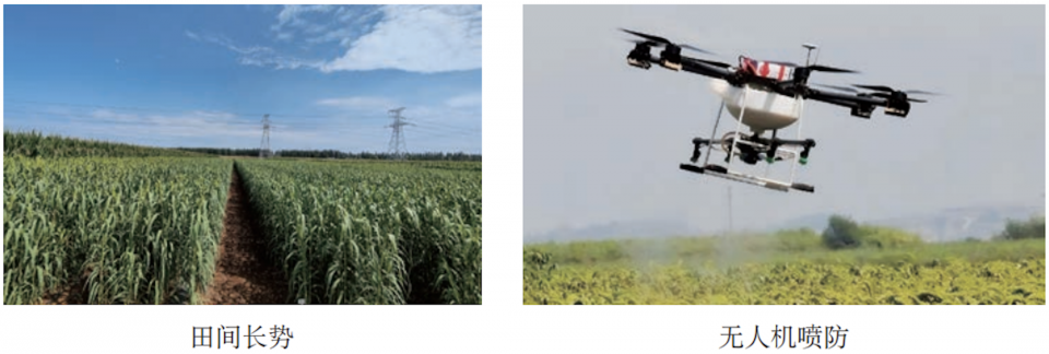 在谷子拔節、孕穗、灌漿等關鍵生育時期,根據谷子生長情況,通過無人機適量噴施葉面肥、作物生長調節劑等,促進谷子生長。