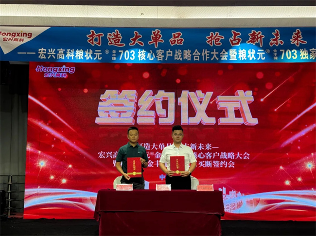 在參會代表的共同見證下,宏興高科農業與北京豐捷一佳農業科技有限公司正式簽署協議,以2200萬元獨家買斷其選育的高產、抗逆玉米品種糧狀元®金豐捷703的生產經營權。