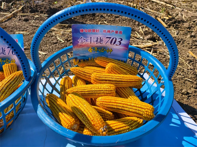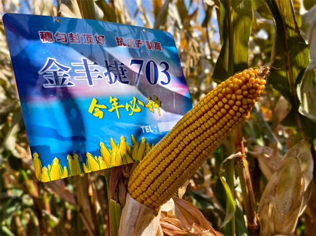 2024年,玉米穗腐病嚴重影響農民賣糧收益。糧狀元®金豐捷703憑借其抗穗腐特性,籽粒為純角質糧,賣價達到一等糧價格,以產量和品質的雙重優勢,切實保障農民種糧收益。該品種在東華北中熟區受到種糧大戶廣泛認可,品種熱度持續攀升,“糧狀元”口碑日益響亮。