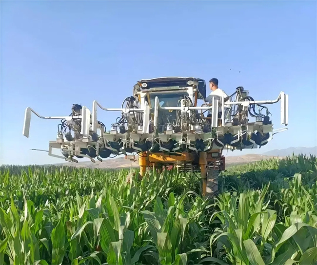 在田間,三臺意大利進口的抽雄機械正高效運作。智能機械臂能夠根據玉米植株的高度實時調整自身高度精度,確保作業的精準性。潤嘉種業質量總監李森介紹:“機械作業能夠在最佳時間段完成去雄作業,最大限度地提升抽雄效率,從而確保種子的純度。”潤嘉種業建立了17道質量管控節點,涵蓋從親本篩選到田間去雜的全過程。在抽雄關鍵期,公司采取機械抽雄與人工巡檢相結合的方式,30余名質檢員每天徒步20公里,逐壟進行三遍復檢,確保去雄徹底率在99.9%以上。