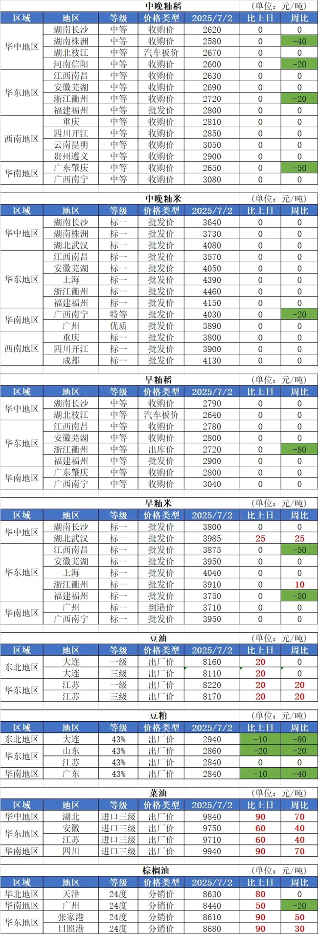 3、據市場調研,2025年湖南省早秈稻種植面積約1819萬畝,7月10日前后迎來全面收獲。對已上市的早熟圓粒早秈稻進行初步測試顯示,早秈稻稻米品質好于往年,出糙率與上年同期相比也有所增長,豐產基本定局。