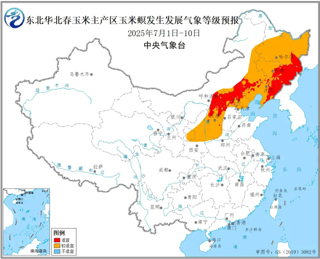 未來10天東北華北春玉米主產區玉米螟發生發展氣象等級預報