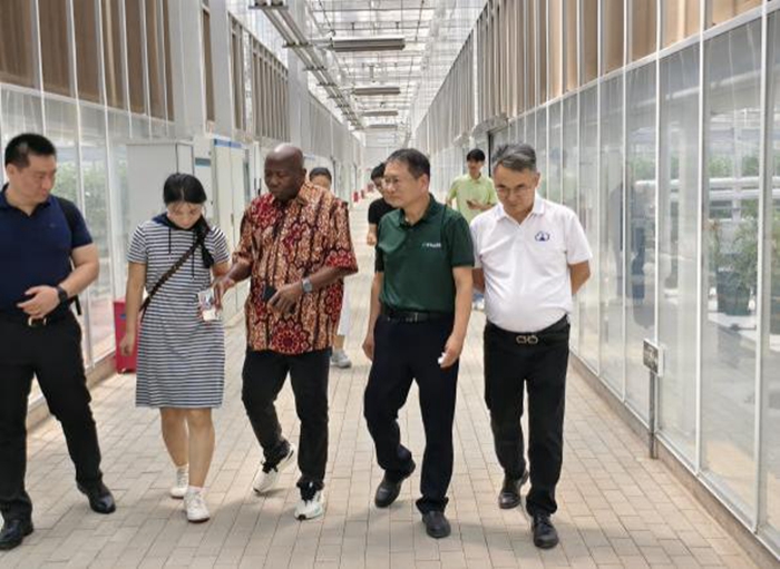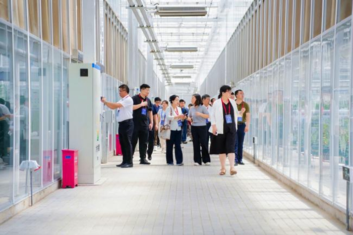 圖為產學研代表在通州國際種業科技園區育種平臺參觀