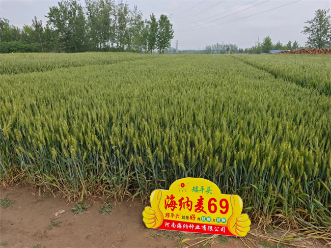 海納麥69由河南海納種業有限公司潛心選育,具有分蘗能力強、成穗率高、產量三要素協調等顯著特點。其高產潛力巨大,區試和生產試驗增產點比例均達100%,區試比對照增產10.4%,生產試驗比對照增產8.9%,增產效果顯著。