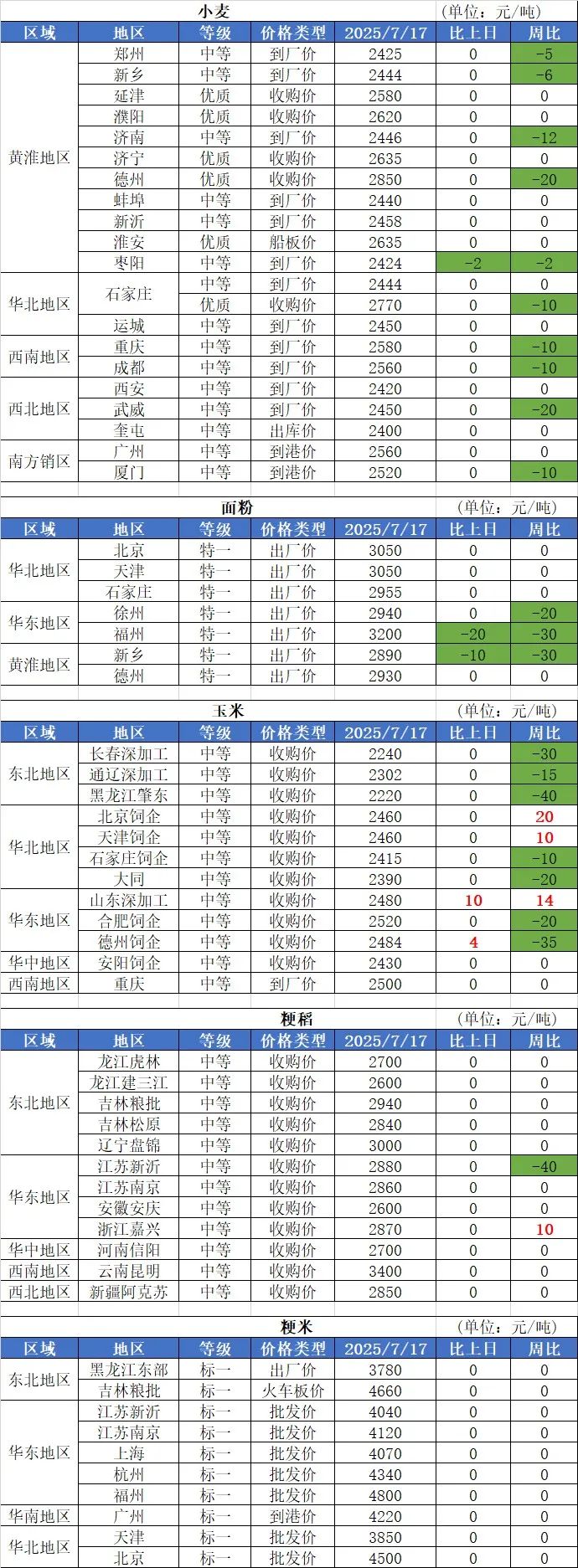 1、7月16日北京市儲競價采購2025年國產小麥26.94萬噸,全部成交,底價2480元/噸,成交價2380-2420元/噸,成交均價2402.5元/噸。底價以二等為基礎價,相鄰等級之間差價為40元/噸,最高結算等級為一等,最低結算等級為三等。