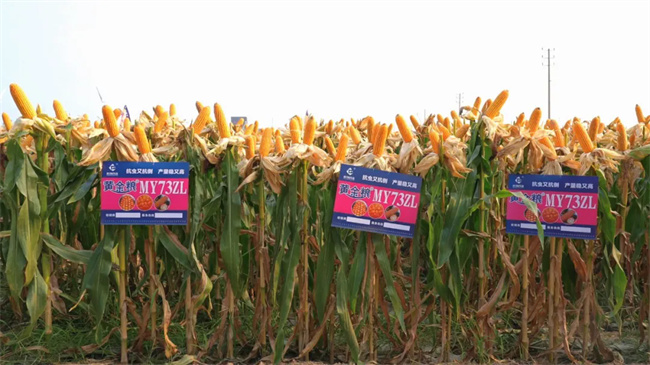 黃金糧MY73自黃淮海區域審定以來,憑借其矮稈耐密,抗病抗倒,高產優質,抗逆廣適等諸多優勢,深受種植戶的青睞。2023年,其推廣面積達到2088萬畝,位居全國玉米推廣面積榜首。2024年,該品種又通過東華北中晚熟區和西北春玉米區國審,并在西南、東南等區試生產試驗中表現卓越,有望進一步擴大種植區域。隨著國家轉基因玉米種植面積的加速推進,黃金糧MY73的三價復合版本品種MY73ZL為其大面積單產提升提供了有力保障,有望助力其實現年銷億畝的宏偉目標。
