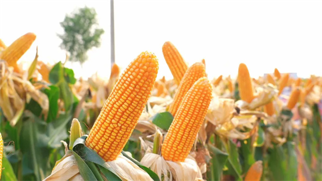 在田間觀摩環節,黃金糧MY73在今年持續高溫干旱的氣候條件下,依然展現出大田優異表現。該品種結實良好,封頂性佳,呈現出一派豐收景象。據現場介紹,該地塊種植密度為6100株/畝,果穗均勻一致,品質金黃透亮。