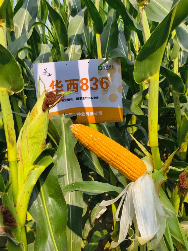 高產品質好:在產量表現上,華西836更是可圈可點。果穗行多粒深,通常為18—20行,出籽率高,高產潛力巨大。在兩年區試中,平均畝產達到638.1千克,比對照增產9.9%,增產效果極顯著;生產試驗中,平均畝產665千克,比對照增產6.6%,同樣達到極顯著水平。2024年9月19日,由農業農村部信息中心組織,在河南省內黃縣亳城鎮內黃智慧農業引領區種植的12.4畝華西836進行測產,結果顯示產量高達908.1千克/畝,這一數據充分彰顯了華西836在產量方面的卓越表現。籽粒品質好,容重790克/升,成熟后籽粒金黃色,深受廣大種植戶及糧商的喜愛。