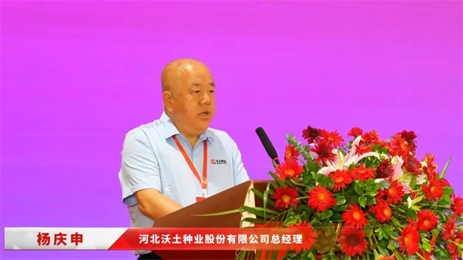 沃土種業總經理楊慶申在大會上致歡迎詞。他回顧了公司20年拼搏奮進的發展歷程,介紹了公司雄厚的研發實力、先進的技術與品種以及持續攀升的經營規模。楊慶申總經理表示,公司將加大科研投入,推動農業科研創新發展;積極拓展市場,提升品牌影響力。以更高站位、更廣視野、更強擔當,引領種業發展,加快優質品種與技術創新步伐,推動產業鏈轉型升級,為我國農業振興和國家糧食安全貢獻更多力量。