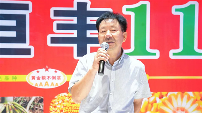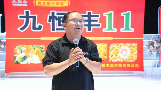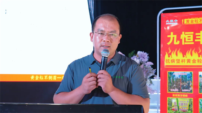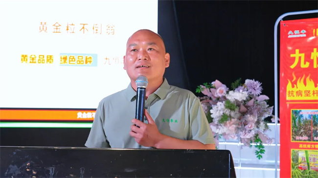 久恒農業銷售總經理竇明震在會上從抗性強、品質優、豐產性好三大方面詳細闡述了九恒豐11的核心競爭優勢,并對市場布局與推廣策略進行了深入解讀。他指出,久恒農業將繼續加大研發投入,不斷優化品種特性,為農業豐收和種業發展提供更加優質的產品和服務。