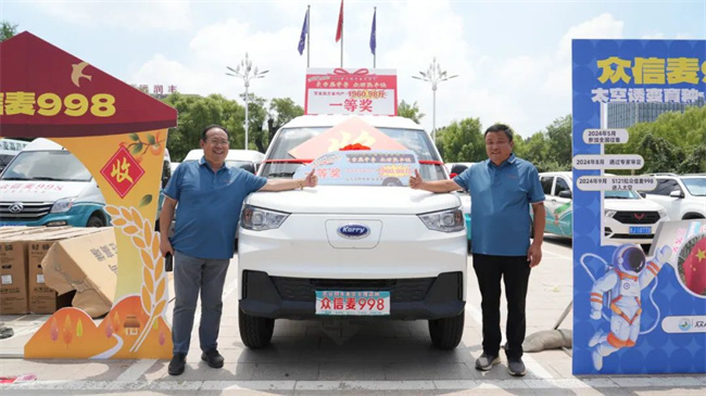活動期間,眾人信公司對2025年度“麥王爭霸賽”眾信麥998高產能手進行了表彰頒獎,來自山東莒縣的種地大戶張老板以畝產1960.98斤百畝方平均產量榮獲一等獎,獲得一輛高檔車。他在接受采訪時表示,自己承包的2800畝地中有1500畝種植了眾信麥998,其高產潛力非常不錯,今秋2800畝地將全部種植眾信麥998,目標畝產過噸,爭取全國第一名。