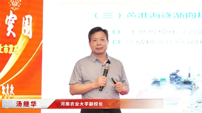 河南農業大學副校長湯繼華教授在《黃淮海玉米育種方向》報告中,結合黃淮海地區農業特點和玉米種植現狀,提出抗逆耐密育種方向,明確育種目標為高產、宜機收、早熟、耐密、抗倒伏/倒折、耐高溫及抗主要病蟲害。湯教授強調,基于前期聯合技豐種業集團選育的YD8010、YD8012、YD8235、YD8019等品種,河南農業大學與技豐種業將進一步深化聯合育種攻關,助力技豐種業集團快速發展。