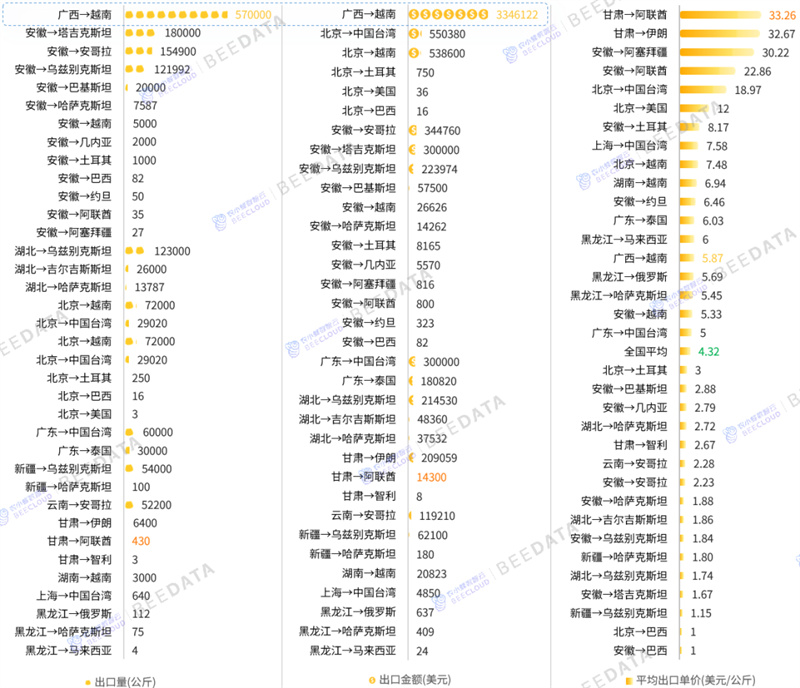 6.4.2.出口:數量的1/3以上(shang)、金額(e)的近1/2通過廣西(xi)銷往越南