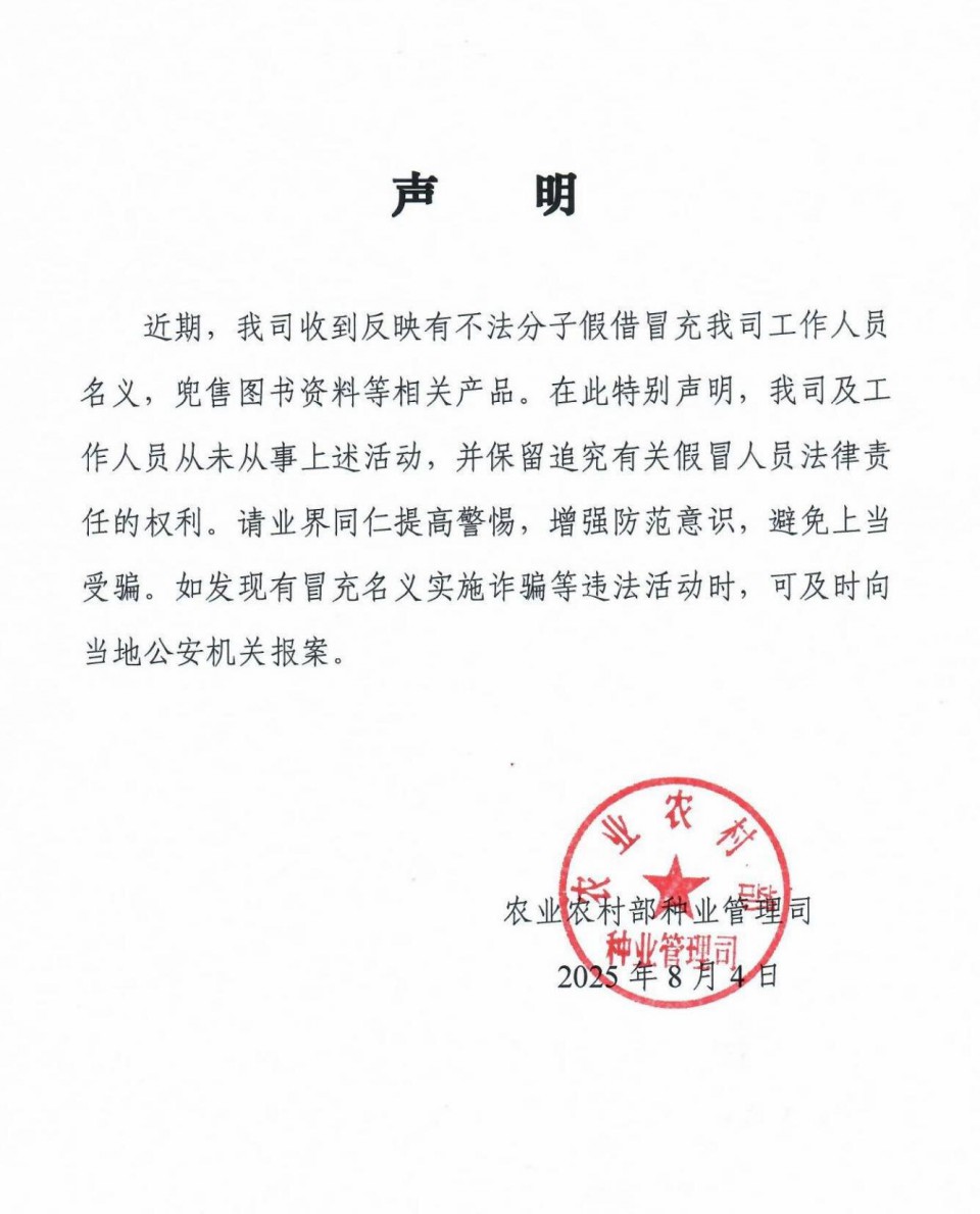發布日期:2025-08-05 來源:農業農村部種業管理司 瀏覽次數: