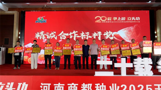 2025年7月31日至8月1日,商都種業在鄭州市成功舉辦了以“商都二十載,爭上游立頭功”為主題的2025年玉米新品種觀摩暨表彰大會。此次大會亮點紛呈,一是全面展示了商都種業在玉米新品種研發與推廣方面的最新成果,彰顯公司強大的科研實力與創新能力;二是組織與會人員實地觀摩公司斥巨資購置、精心打造的辦公新廠區,現代化的設施與科學的布局,充分展現了公司的雄厚實力與長遠發展規劃;三是對合作15年以上以及在業務發展中作出突出貢獻的經銷商伙伴進行了隆重表彰,進一步鞏固了公司與經銷商之間的良好合作關系,激勵各方攜手共進,共創未來。