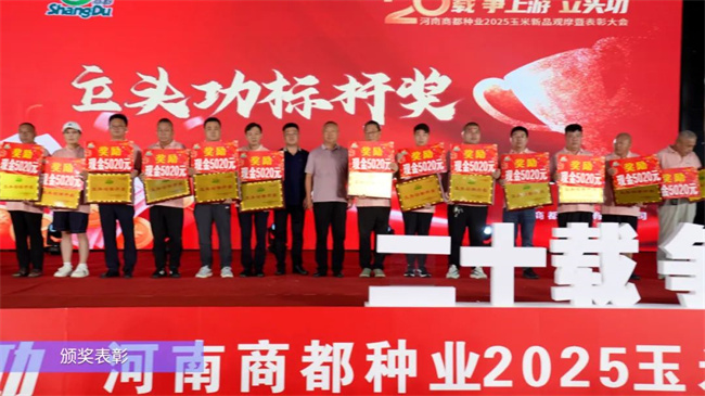 歷經風雨二十載,商都種業與各級經銷商伙伴攜手奮進,齊心協力,取得了令人矚目的成績。在極具挑戰的2024 - 2025年,雙方緊密合作,攻堅克難,圓滿完成了既定的各項目標,成績斐然,令人振奮。2025年恰逢商都種業成立20周年之際,為表達對各級經銷商伙伴辛勤付出的誠摯感謝,會議現場,公司對合作15年以上的、近5年單品銷量較大的、本縣區內商都品種占比較大的、宣傳方面有獨特亮點的以及商都品牌專營店等88位縣級經銷商,進行了隆重表彰,并給予了相應獎勵。這一表彰不僅是對經銷商伙伴過去多年來對商都種業認可的肯定,更是對大家未來繼續與商都種業攜手共進的期待。