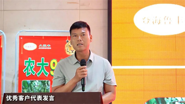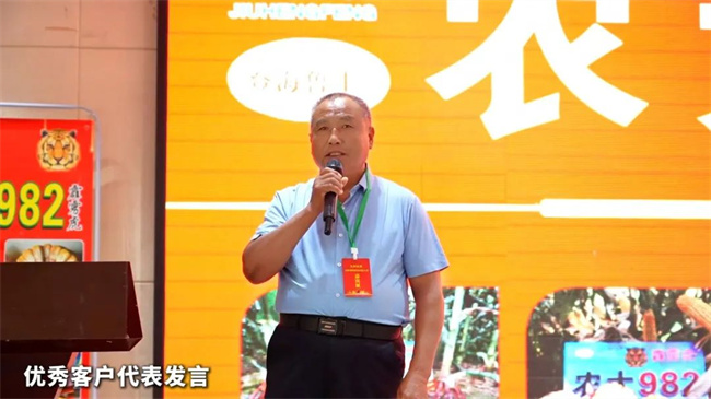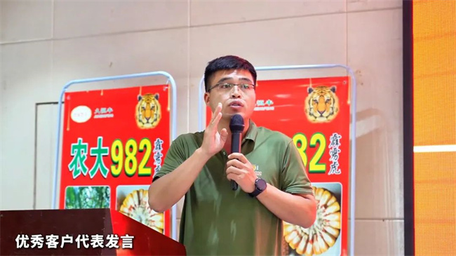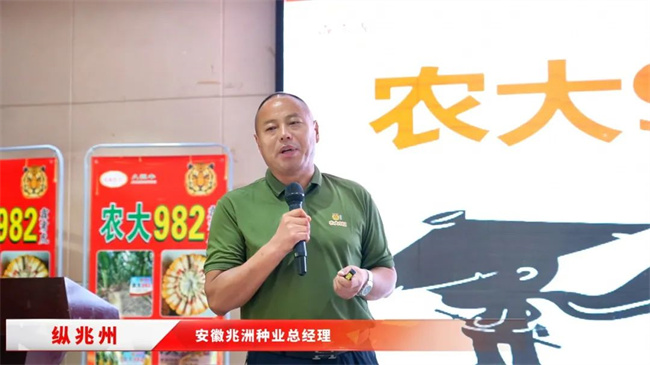 安徽兆州農業科技有限公司總經理縱兆洲分享了農大982品種的綜合表現。他指出,農大982在大旱之年的隨機地塊中仍獲得高度認可,充分展現了其綜合抗性強、品種基因優良等特點,且符合耐密型品種的發展趨勢。在當前種業市場競爭激烈、眾多品種難以持久的背景下,選擇農大982并結合線上線下宣傳及獨特的營銷服務,定能為公司帶來可觀的財富與廣闊的發展空間。縱總呼吁各位伙伴積極行動起來,把握這一難得的機遇,共同迎接未來的挑戰。