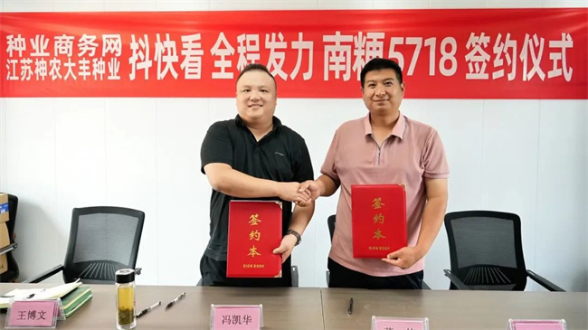 2025年8月4日,江蘇神農大豐種業科技有限公司副總經理馮凱華一行蒞臨種業商務網直播基地進行考察交流,并與種業商務網正式簽訂了超級稻品種南粳5718的大單品流量增長合作協議。