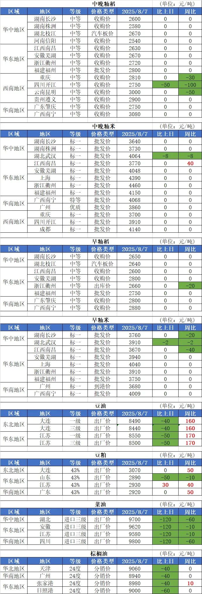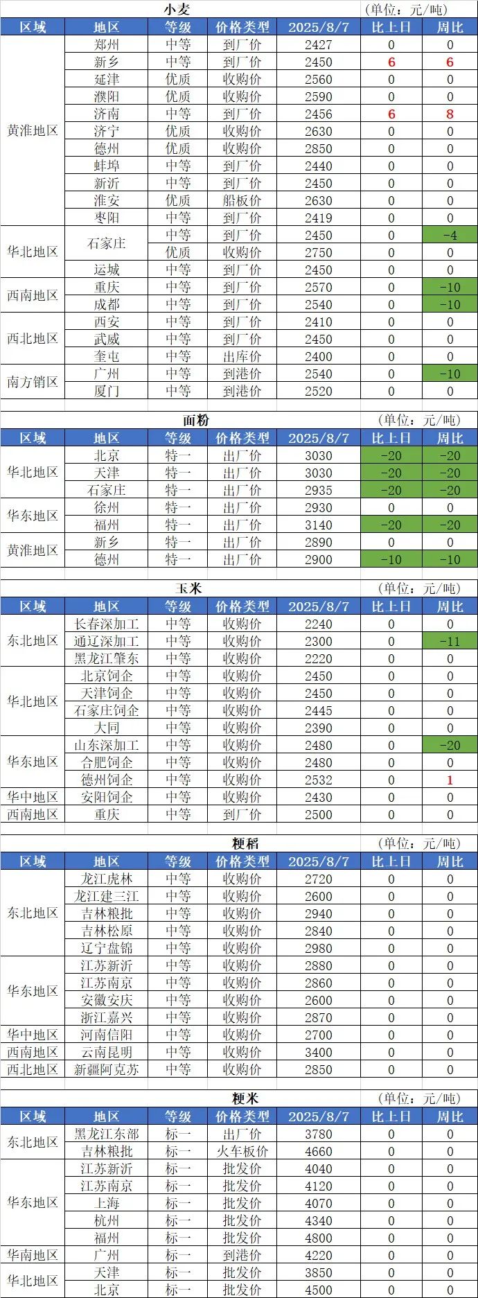 2、8月7日,國內部分玉米深加工企業收購掛牌價調整:其中山東沂水青援玉米收購報價2500元/噸,較昨日漲10元/噸;山東恒仁工貿收2490元/噸,較昨日漲10元/噸;黑龍江綏化昊天玉米收購報價2245元/噸,較昨日跌5元/噸。