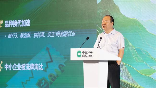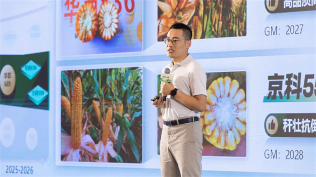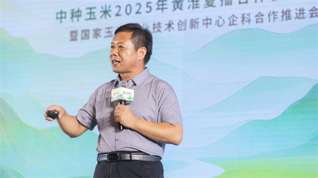 中種集團玉米業務產品線負責人王繼師進行了題為《中種集團玉米強勢管線定勝中原》的報告分享。系統講解了中種集團玉米強化自育產出,深化外延企科合作,著力打造黃淮強勢產品管線,依托短中長期可持續的管線布局,與黃淮合作伙伴攜手共贏共創黃淮偉業。