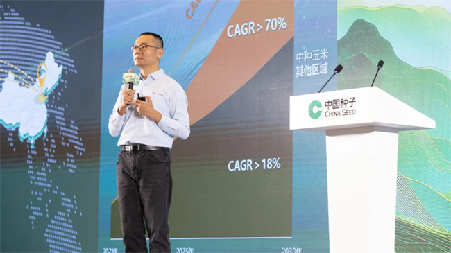 中種集團副總經理、玉米業務總經理馬瑞以《蛻變孳新偉業黃淮》為題分享中種集團玉米業務黃淮戰略。他介紹,中種集團玉米近三年快速蛻變孳新,已構建起堅實發展基礎。中種集團玉米在品種自育方面持續發力,堅持多元化育種模式,動態聚焦,依托創新育種技術與工程化體系,構建差異化競爭優勢,打造黃淮強勢品種管線。同時,與國家玉米技術創新中心共建企科合作新生態,以尖端科技與強勢產品造福廣大黃淮種植者。此外,馬瑞還強調25/26作物季已然到來,中種集團玉米將持續打造系列重磅品牌曝光活動,引領“陸海空”集成式線上線下創新推廣新模式。