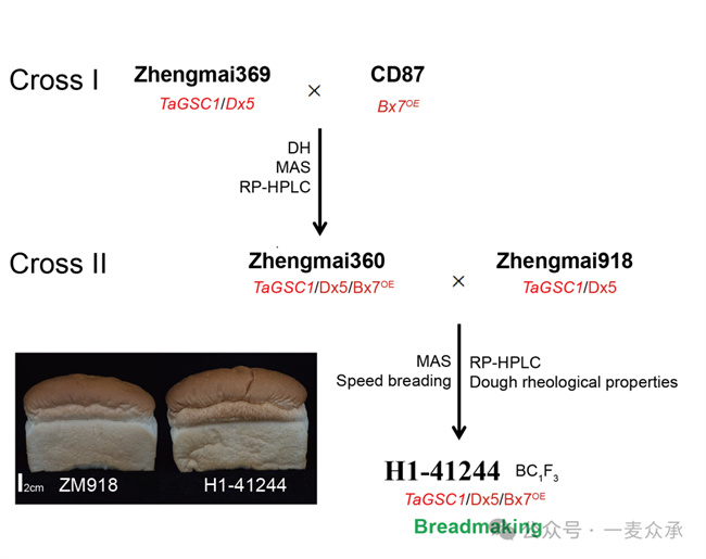 面包烘焙類品種:重點解決濕面筋含量偏低、延展性偏弱等問題,聚合高分子谷蛋白亞基1Ay、7OE以及控制亞基表達和含量的基因,目標是選育產量不低于主推品種且烘焙品質達到國際一流的強筋品種。